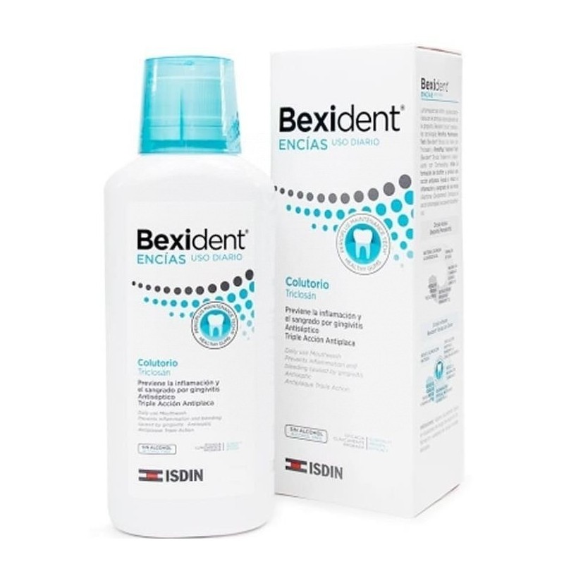 ISDIN BEXIDENT ENCÍAS COLUTORIO CON TRICLOSÁN AYUDA A REDUCIR LA INFLAMACIÓN DE LAS ENCÍAS DAÑADAS POR LA ACCIÓN DE LA GINGIVITIS. SU FORMULACIÓN CON INGREDIENTES TONIFICANTES Y REGENERADORES MANTIENEN LAS ENCÍAS EN BUEN ESTADO CON SU USO DIARIO.LA CAPACIDAD DE ADHESIÓN DEISDIN BEXIDENT ENCÍAS COLUTORIO CON TRICLOSÁN PERMITE LLEVAR A CABO UNA ACCIÓN SOSTENIDA EN EL TIEMPO.