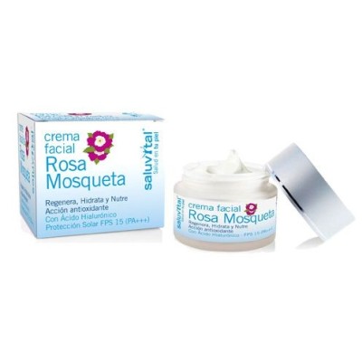 Crema completa para el tratamiento diario de la piel. Basada en aceite natural de rosa mosqueta, ácido hialurónico, aloe vera y tocoferol (vitamina E). Excepcional por su alto poder regenerador-reparador, reconstruye los tejidos a nivel celular, disminuyendo las arrugas, cicatrices, líneas de expresión y manchas de la piel. El tocoferol actúa en la piel como antioxidante celular.